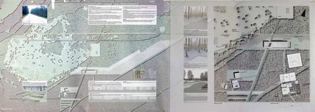 Neue Elemente werden sichtbar als neue Schicht auf das Gelände aufgelegt, Relikte gesichert, historische Orte und Bezüge markiert, nicht rekonstruiert.