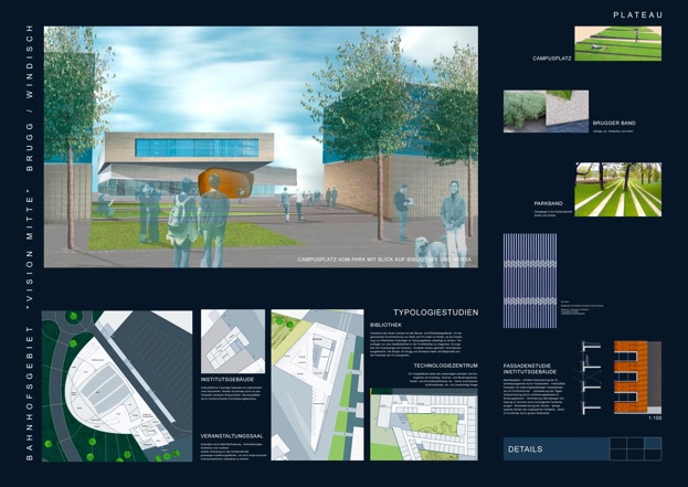 Campus-Neuplanung für Fachhochschule Nordwestschweiz als städtebaulicher Entwicklungsnukleus und die Einbindung in die Umgebung (Bahn, Parks. usw.)