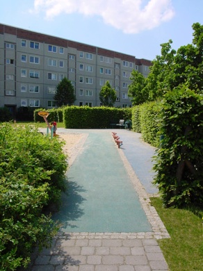 Aufgrund seiner schlechten Besonnung und seines Zuschnittes kann dieser Hof nur in geringem Umfang die Funktion eines Wohnhofes erfüllen.