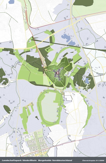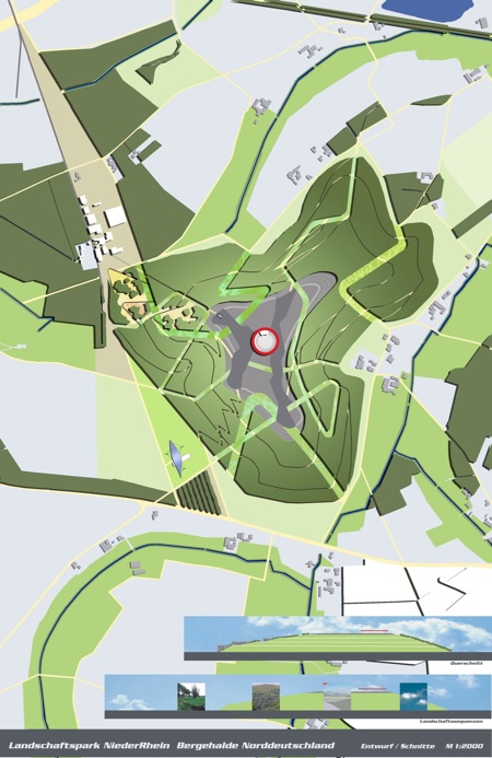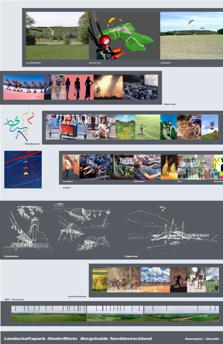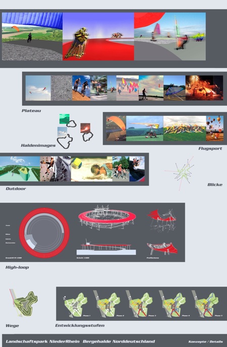 Für die Halde als Zentrum des Landschaftsparkes Niederrhein sollte unter Einbeziehung der noch vorhandenen Zechenstrukturen ein im Kontext zu den anderen Halden des Ruhrgebietes besonderes Image in Zusammenhang mit der Nutzung Trend- und Flugsport entwickelt werden.