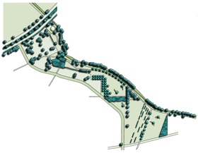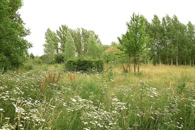 Zu den eingestreuten Sitzinseln führt durch die Hochstaudenflur kein Weg, damit im Schatten eines Baumes dort das fast unsichtbare Zurückziehen und der Aufenthalt inmitten der Natur möglich ist.